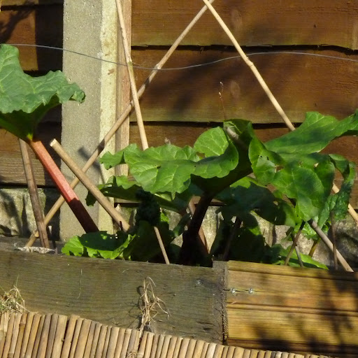 So far, the rhubarb is outperforming everything else, but the blueberries and raspberries are looking promising for later on.