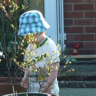 So, Niblet and I have spent a lot of time out in the garden, playing golf (his favourite thing), kicking the football, playing hit the football with the (plastic) golf clubs!! Throwing around the sparkly ball, which is super shiny in the sun, drawing on the patio with giant chalks, throwing water everywhere